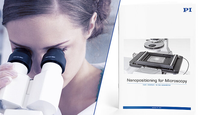 One of the most common application in Light Sheet Microcopy is the creation of Z stacks with which the sample can be wholly depicted in three dimensions. For this purpose, the sample is moved in the Z direction (that is, along the optical axis of the objective lens). For this task, PI contributes compact linear stages of the L-505 type. These very compact linear stages have a folded drivetrain, DC motors with gearhead, linear encoders, and offer 26mm travel range at a bidirectional repeatability of ±250nm. The stage also excels by a high stiffness and guiding accuracy due to ball guides.
