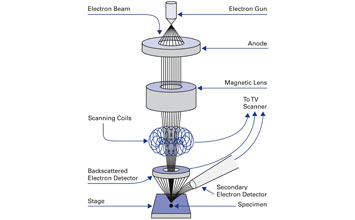 - Scanning electron microscopy (SEM) exploits a beam of electrons to interrogate specimens with an approximate resolution of 0.2 nm, or 200 picometres (pm), achieving magnifications of up to 2,000,000x.