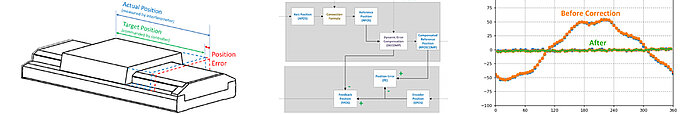 In this overview, we present an example of results from short highly dynamic moves of a mass of 2.7 kg with tight error bands using repeated 500nm and 50µm continuous steps. The results shown below are using PILOT as noted for best error characteristics and to achieve dynamics in a compact stage form factor enhancing motor performance while reducing motor heating. An advantage of PILOT is that it gives the same dynamics with less error, less motor current, and less injected heat—preventing a problem instead of compensating for it after. PILOT technology can be applied to both linear motion and rotational motion.
