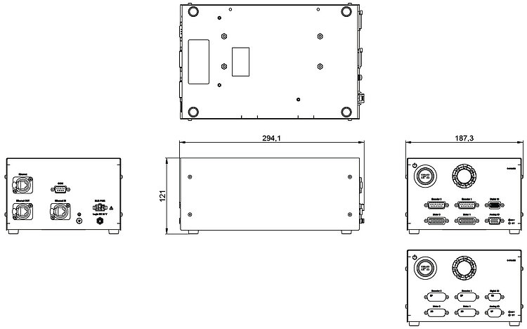| Digital I/O lines | HD D-sub 15 (f) and motor connectors: 2 × outputs PNP 24 V source; also control the drivers for the motor brakes Default for inputs: 2 × PNP 24 V source on HD D-sub 15 (f); in addition 2 × NPN 5 V sinking for reference switches on the motor connectors Optional configuration for inputs: 4 × PNP 24 V source on HD D-sub 15 (f) |