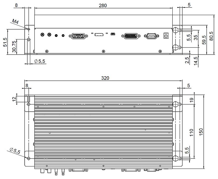 USB, RS-232, fast serial interface with up to 25 MBit/s. Additional high-bandwidth analog control input / sensor input. Analog output, e.g., for external amplifiers.