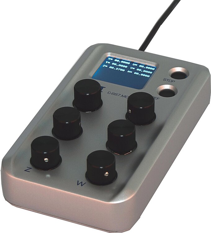 The hexapod controller provides simple and intuitive control of parallel-kinematic 6DoF systems: All target positions can be commanded in Cartesian coordinates. The controller performs the calculations for controlling the individual struts and the resulting desired movement of the platform.