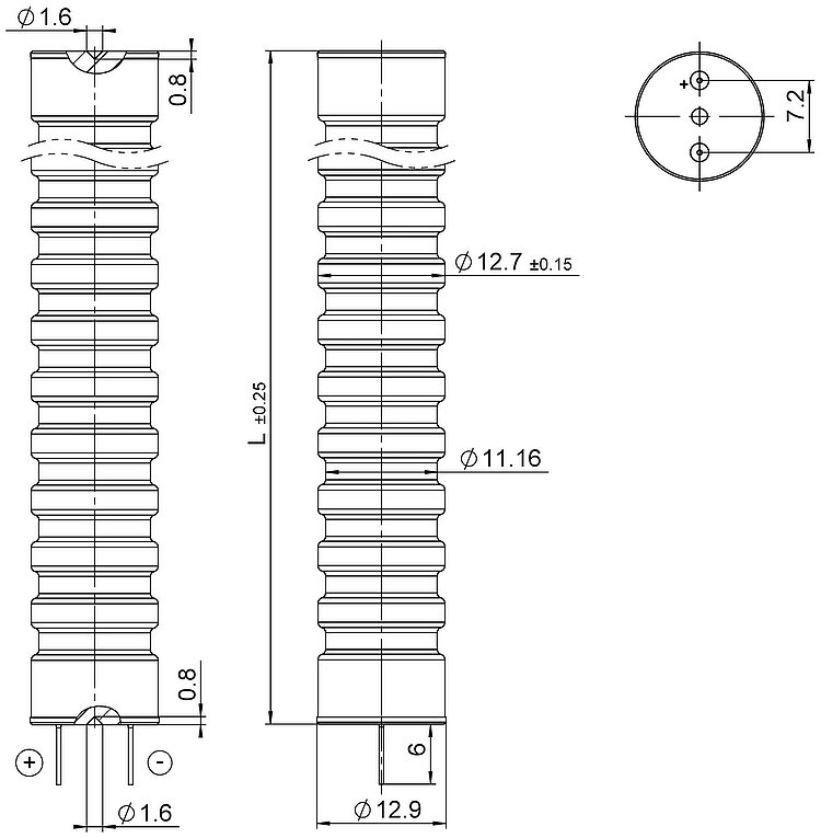 Operating voltage -20 to 150 V. Ceramic insulation, polymer-free. Insensitive to humidity. Excellent temperature stability. UHV-compatible to 10-9 hPa, no outgassing, high bakeout temperature. Ideal for dynamic operation. Flexible thanks to numerous designs. Encapsulated versions for operation in splash water or oil.