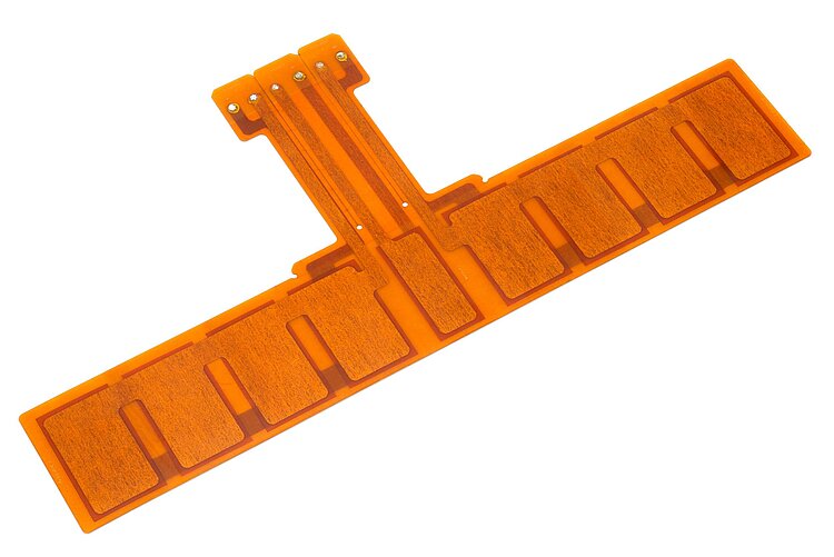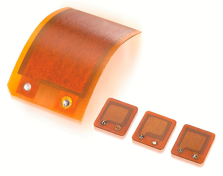 Functionality as actuator and sensor component. Nominal operating voltage from 100 up to 1000 V, depending on the active layer height. Power generation for self-sufficient systems possible up to the milliwatt range. Can also be applied to curved surfaces.