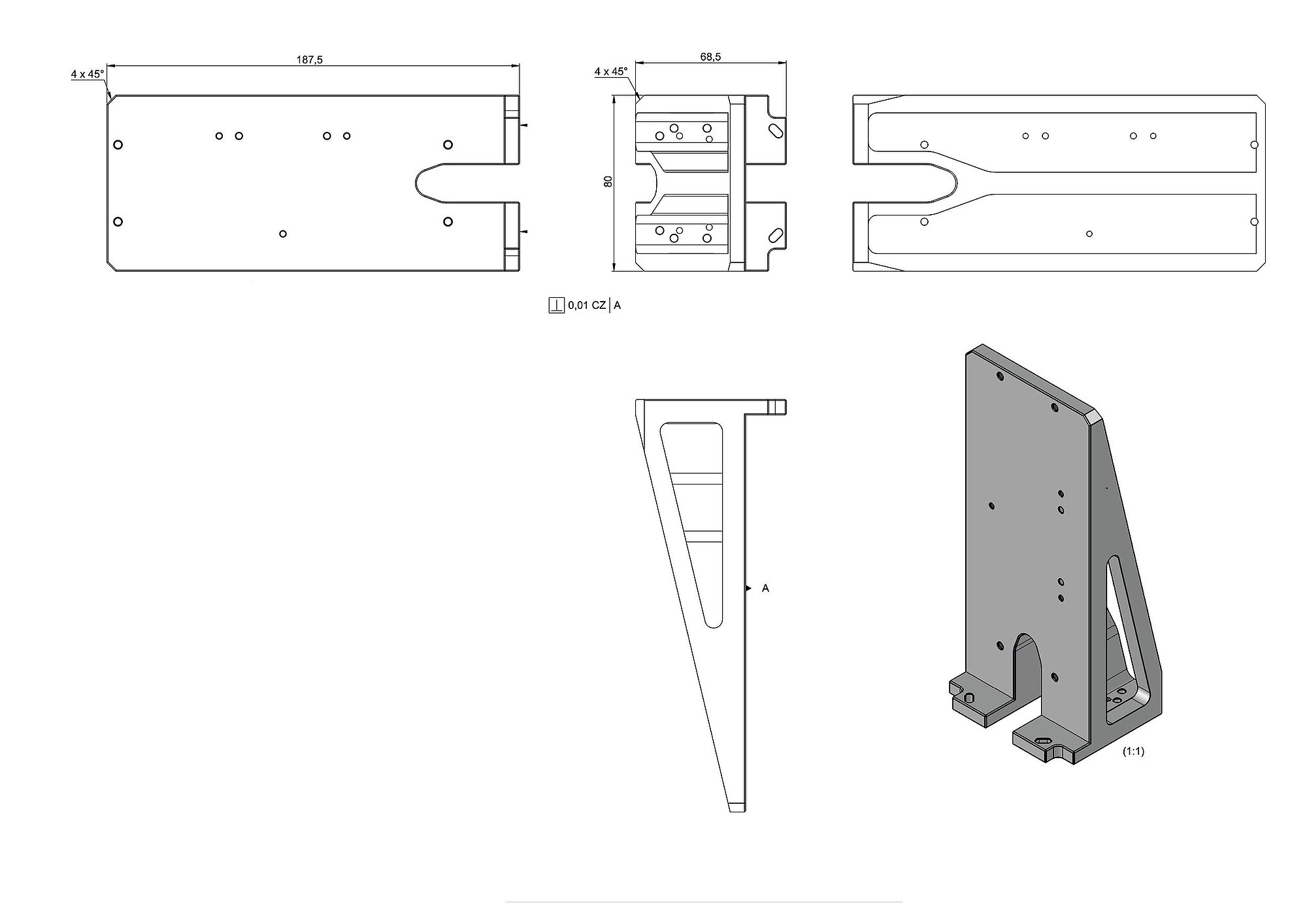 Mounting bracket for Z mounting of the N-332.24(Y) onto a N-332 linear stage; nickel-plated aluminum; including mounting kit