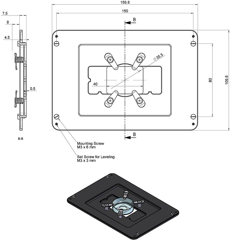 Petri dish holder, for PD73Z2COW / PD73Z2ROW PInano® Z piezo scanner systems (compatible with U-780.DOS systems for Olympus microscopes)